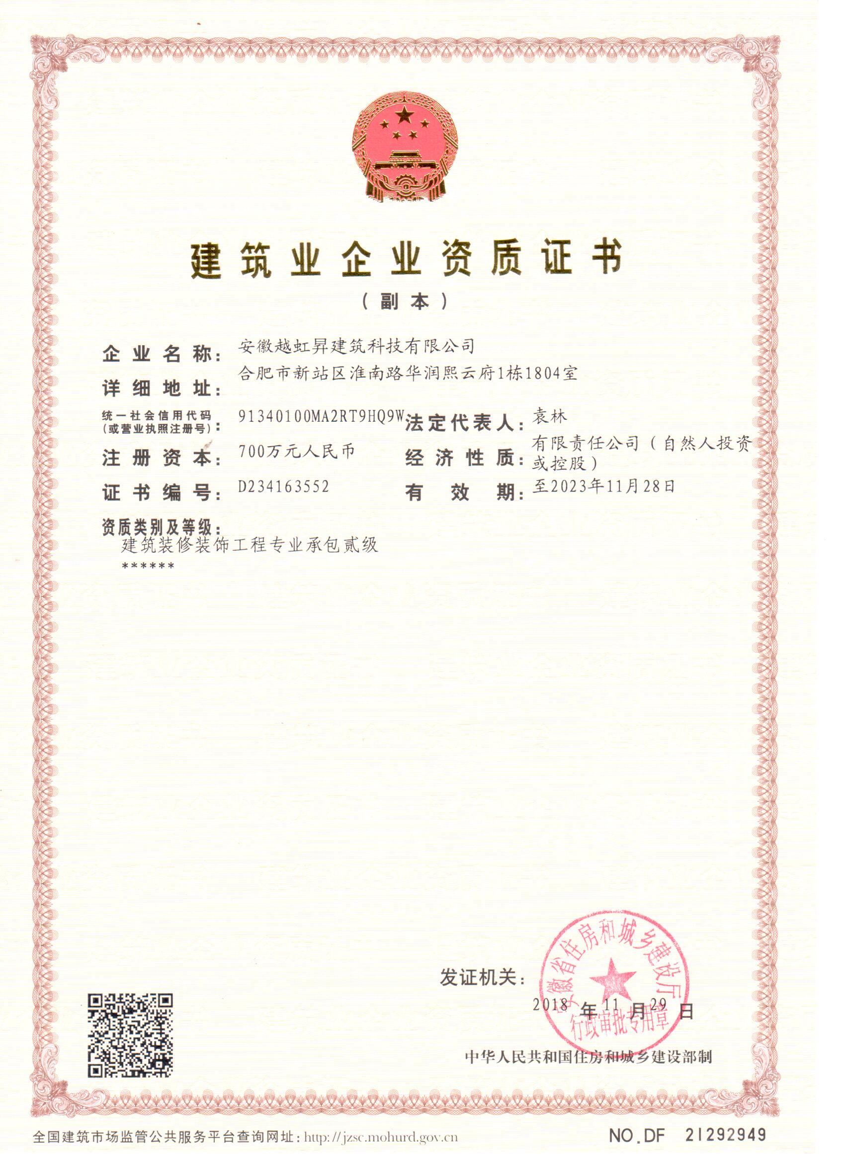 • 建筑企業資質證書